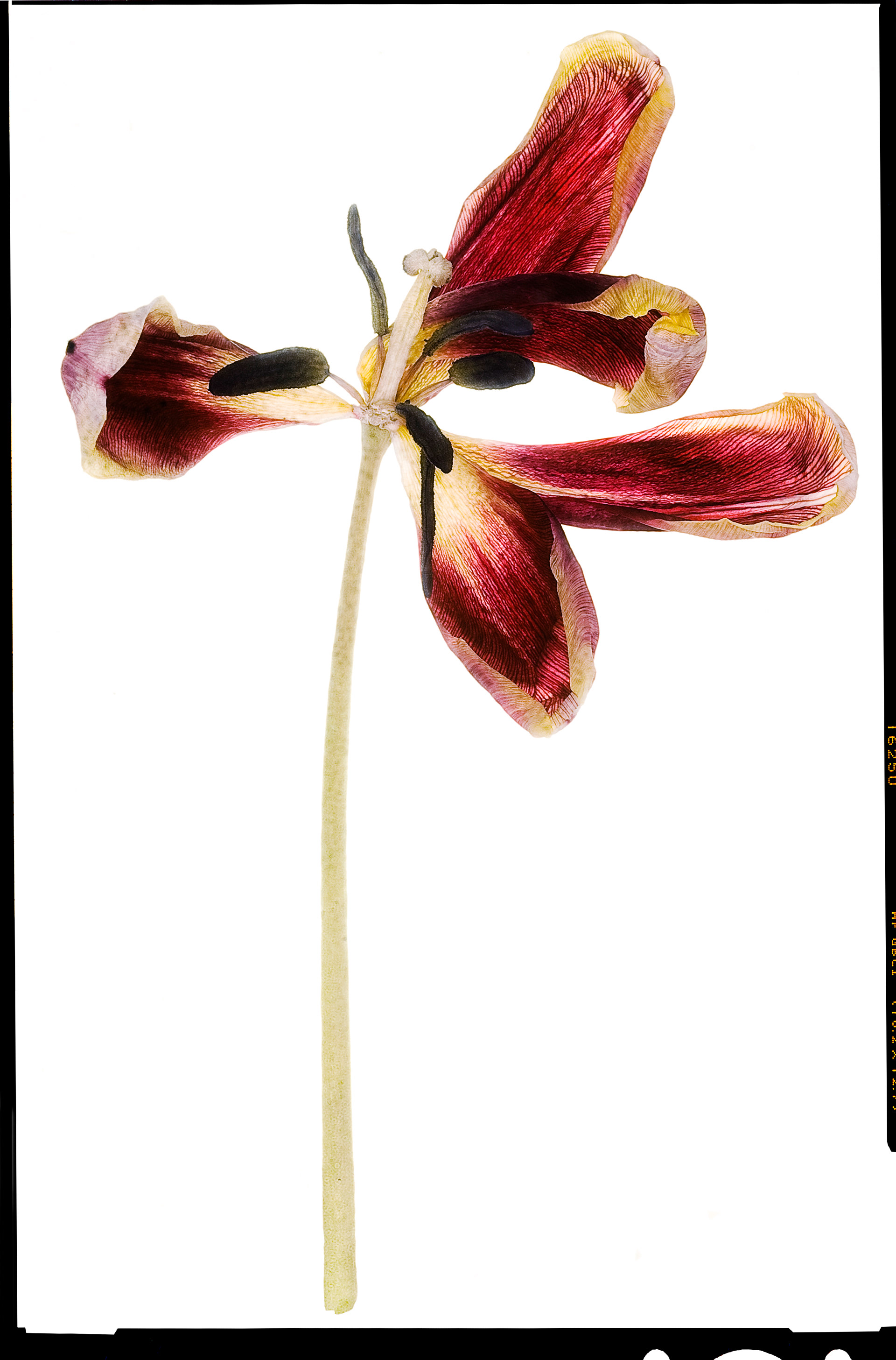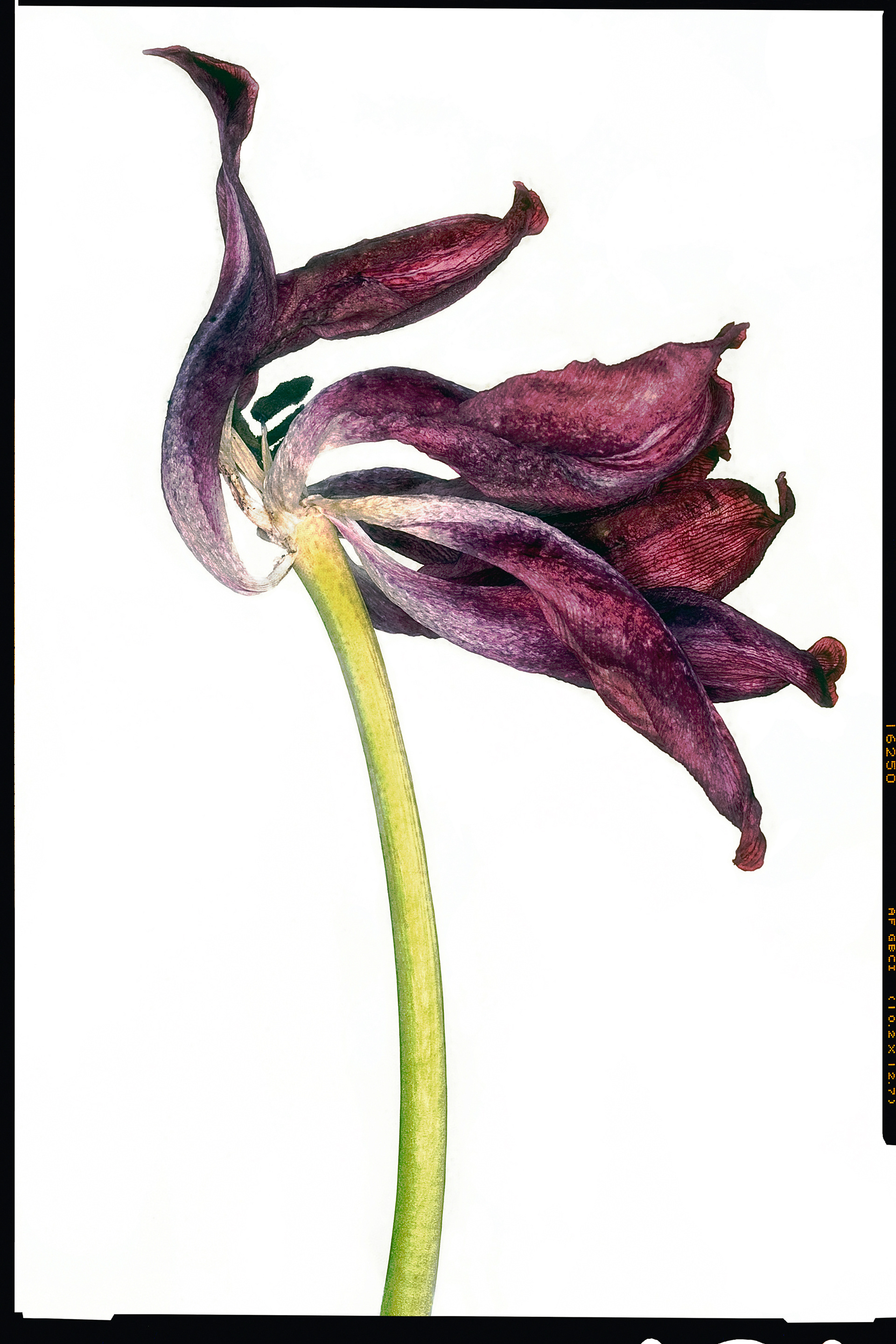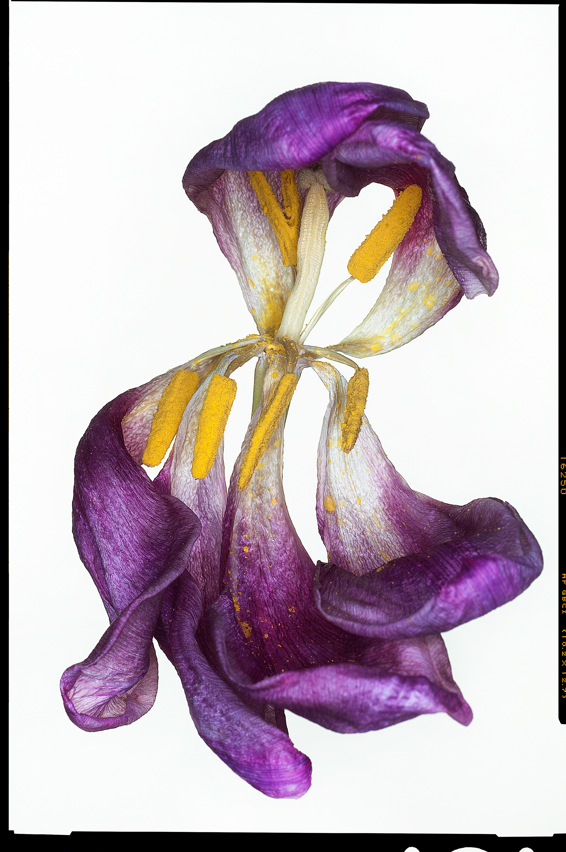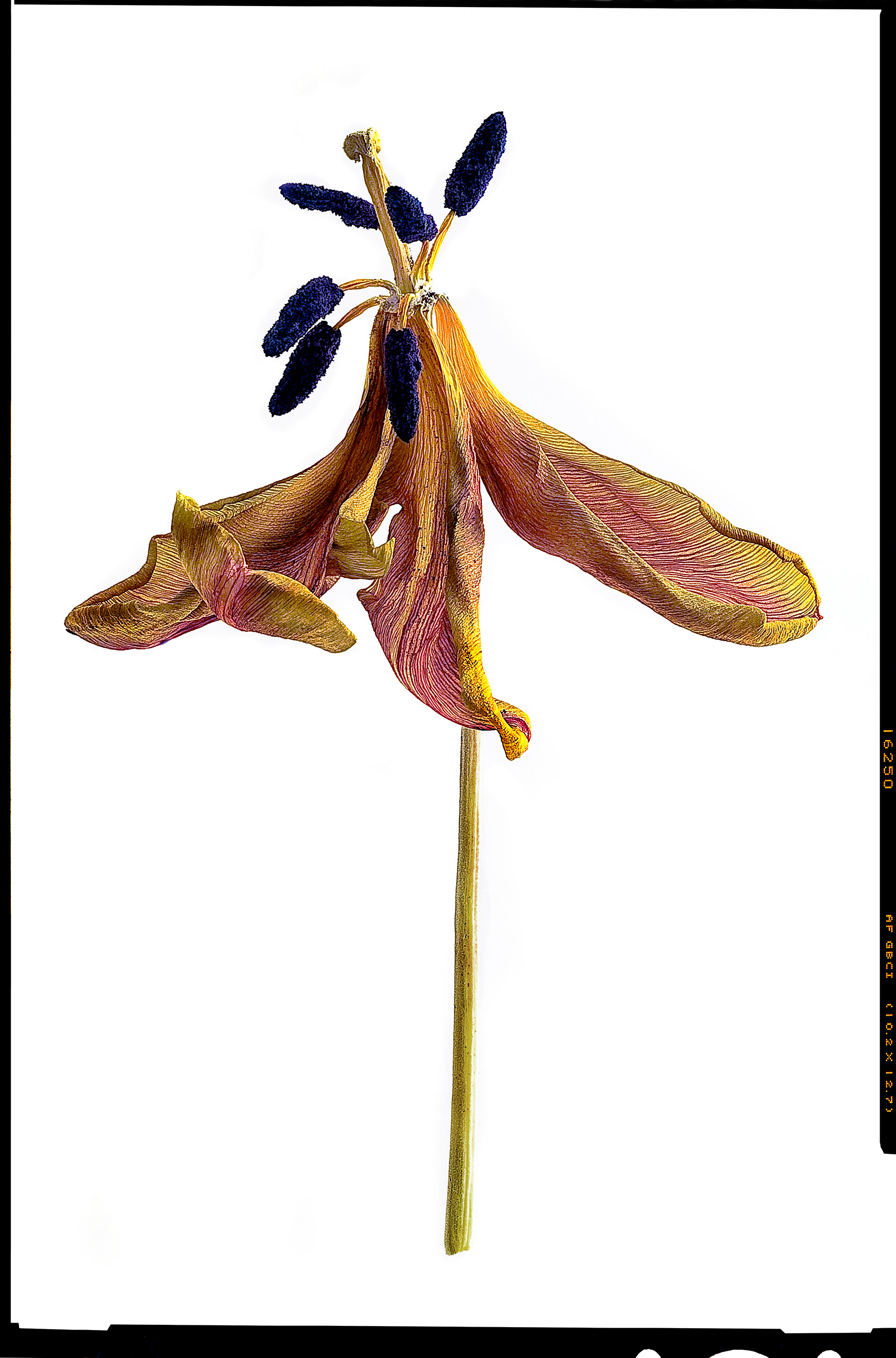 A collection of mainly dried or wilting flowers photographed close-up in the studio and a few scanned in the scanner.