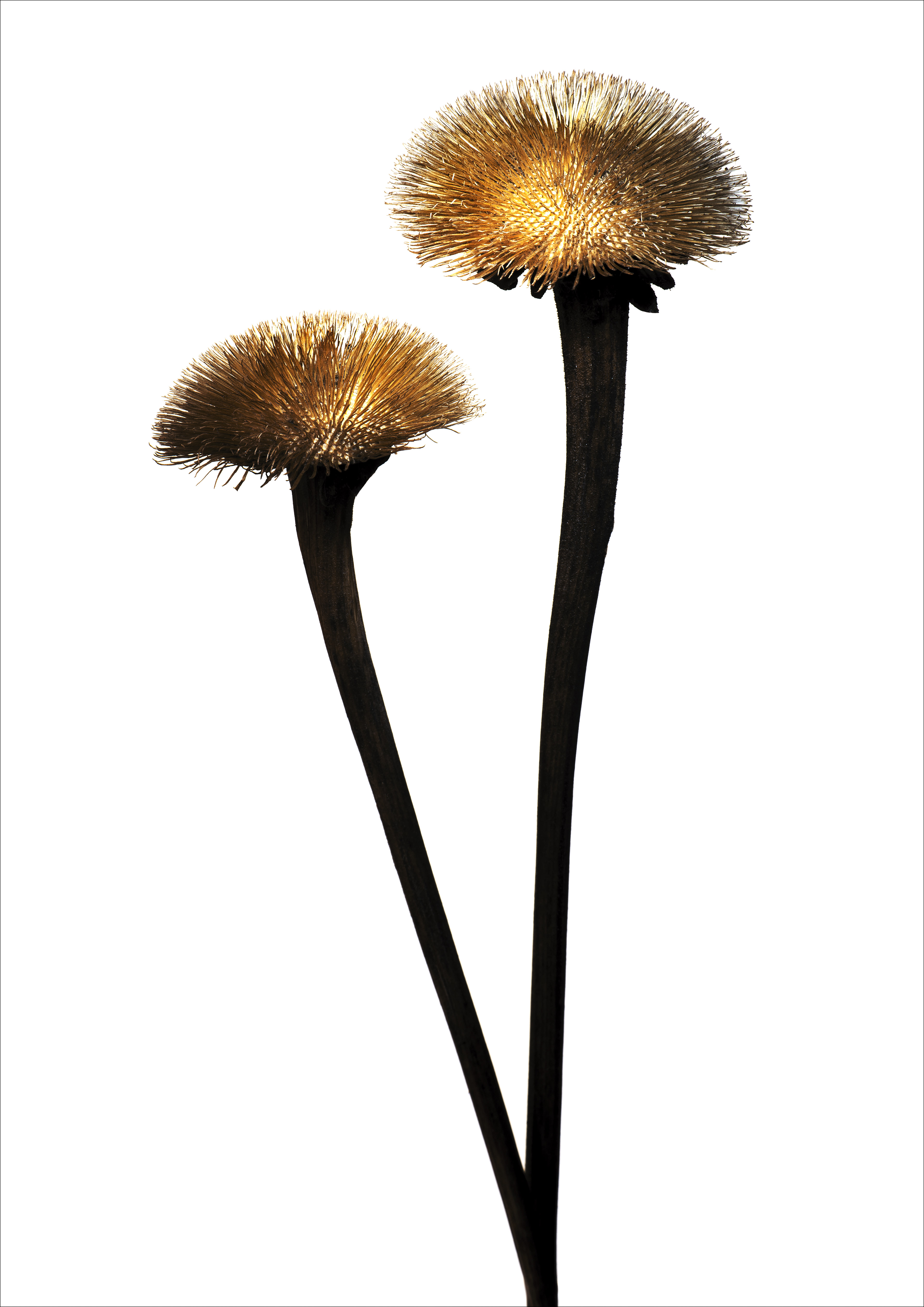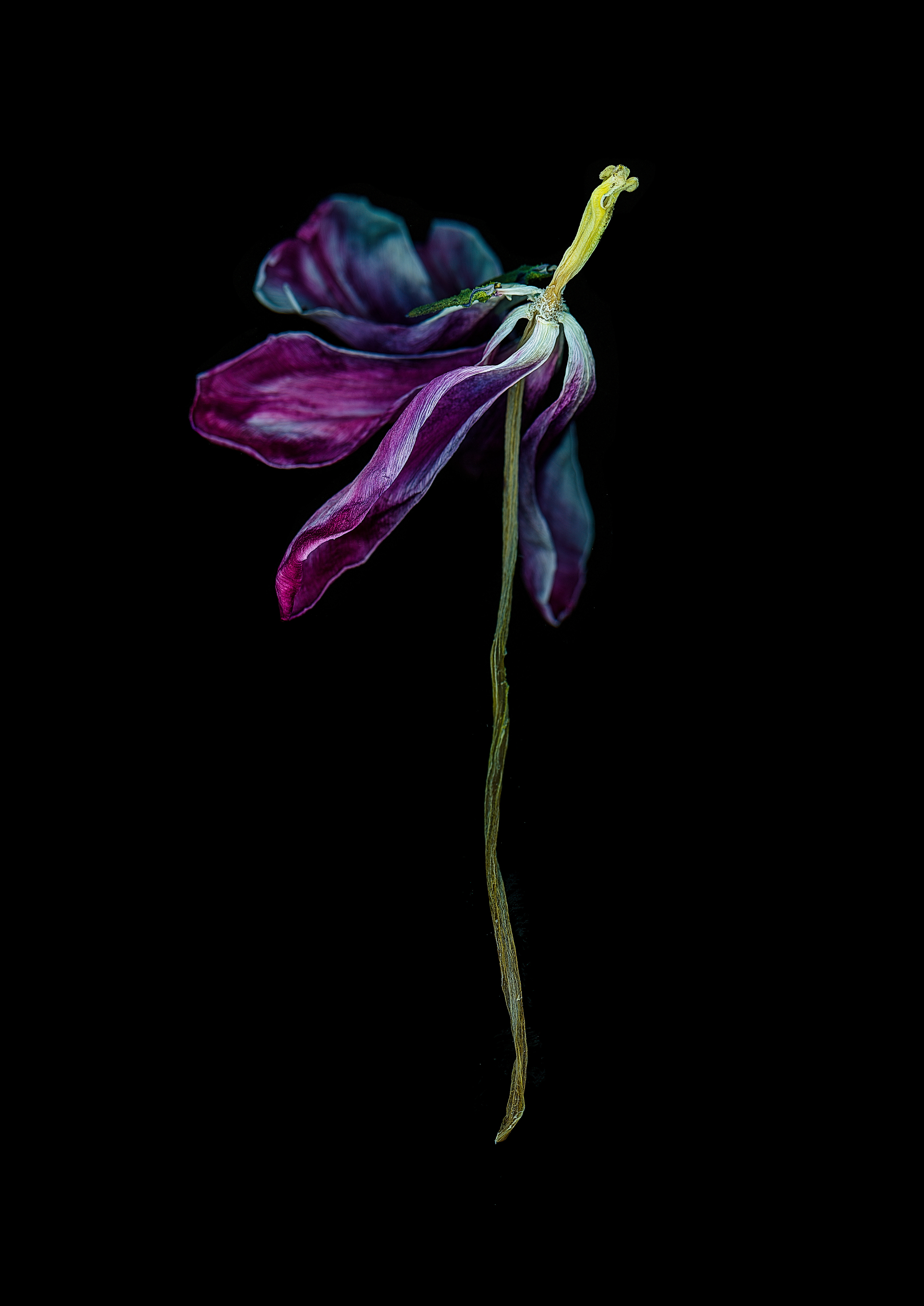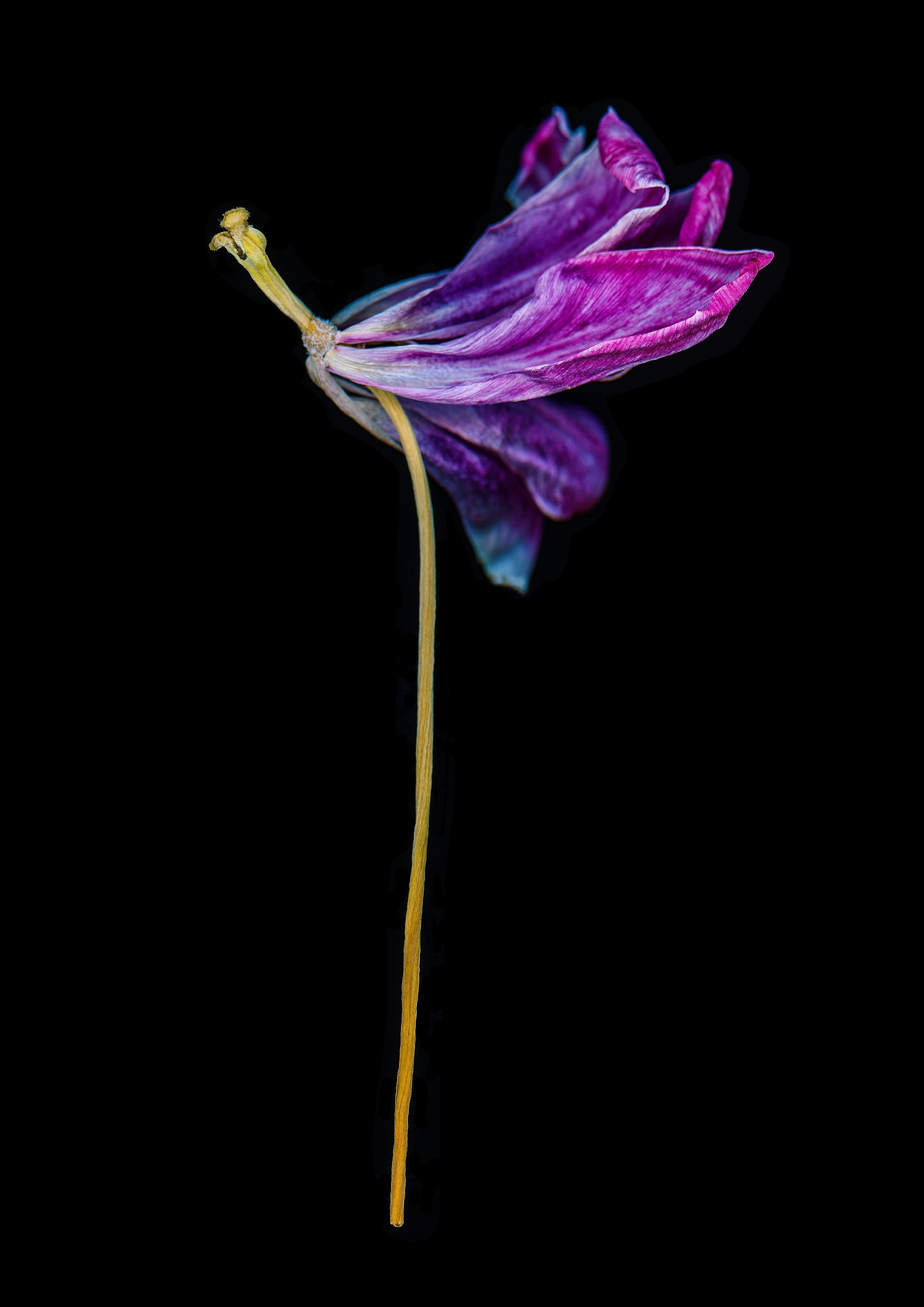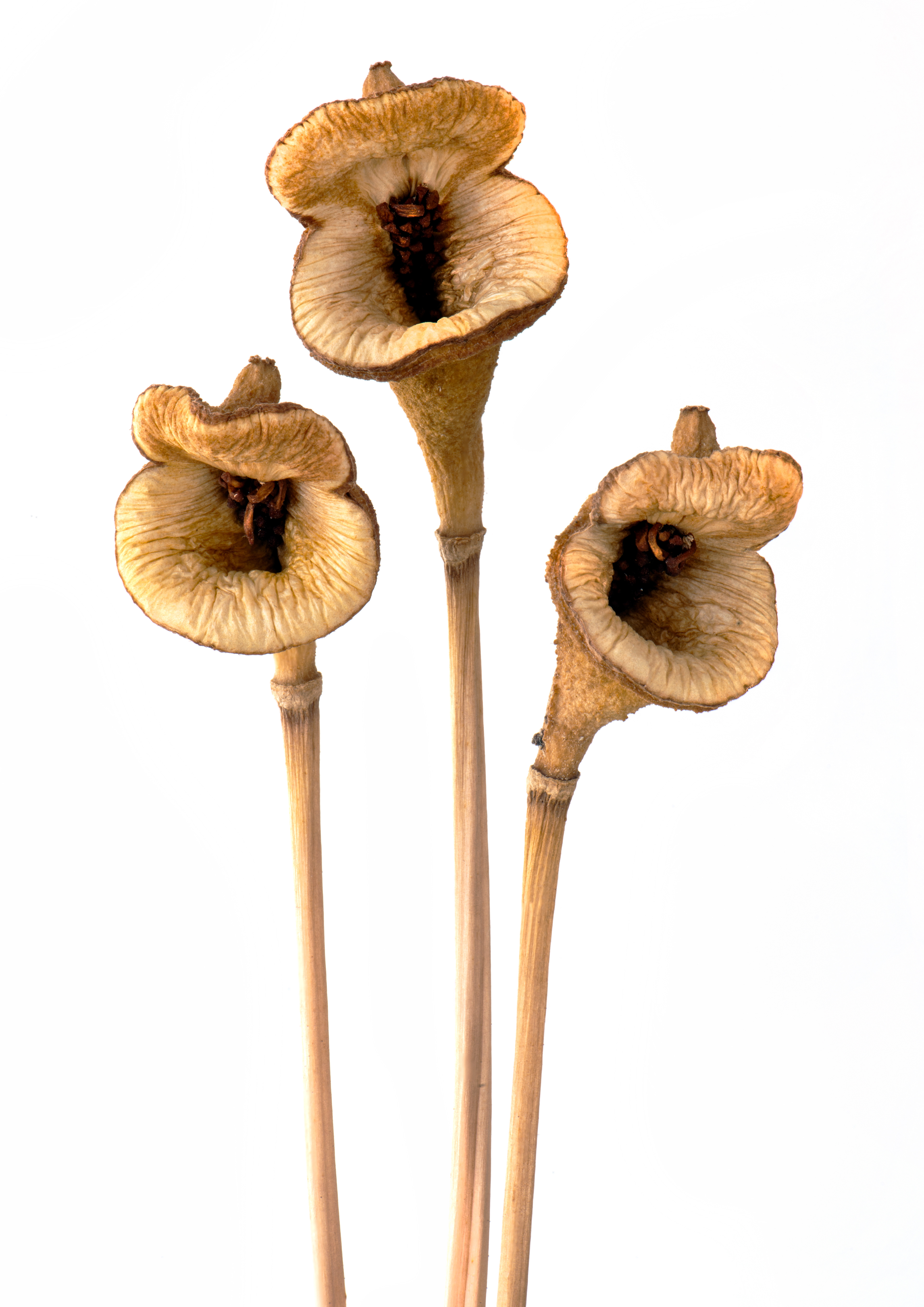 A collection of mainly dried or wilting flowers photographed close-up in the studio and a few scanned in the scanner.